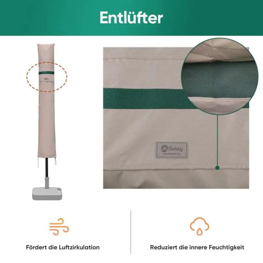Starke Schutzeigenschaften: Unsere wasserabweisende Hülle schützt Ihren Sonnenschirm vor Regen und bietet hervorragenden UV-Schutz.