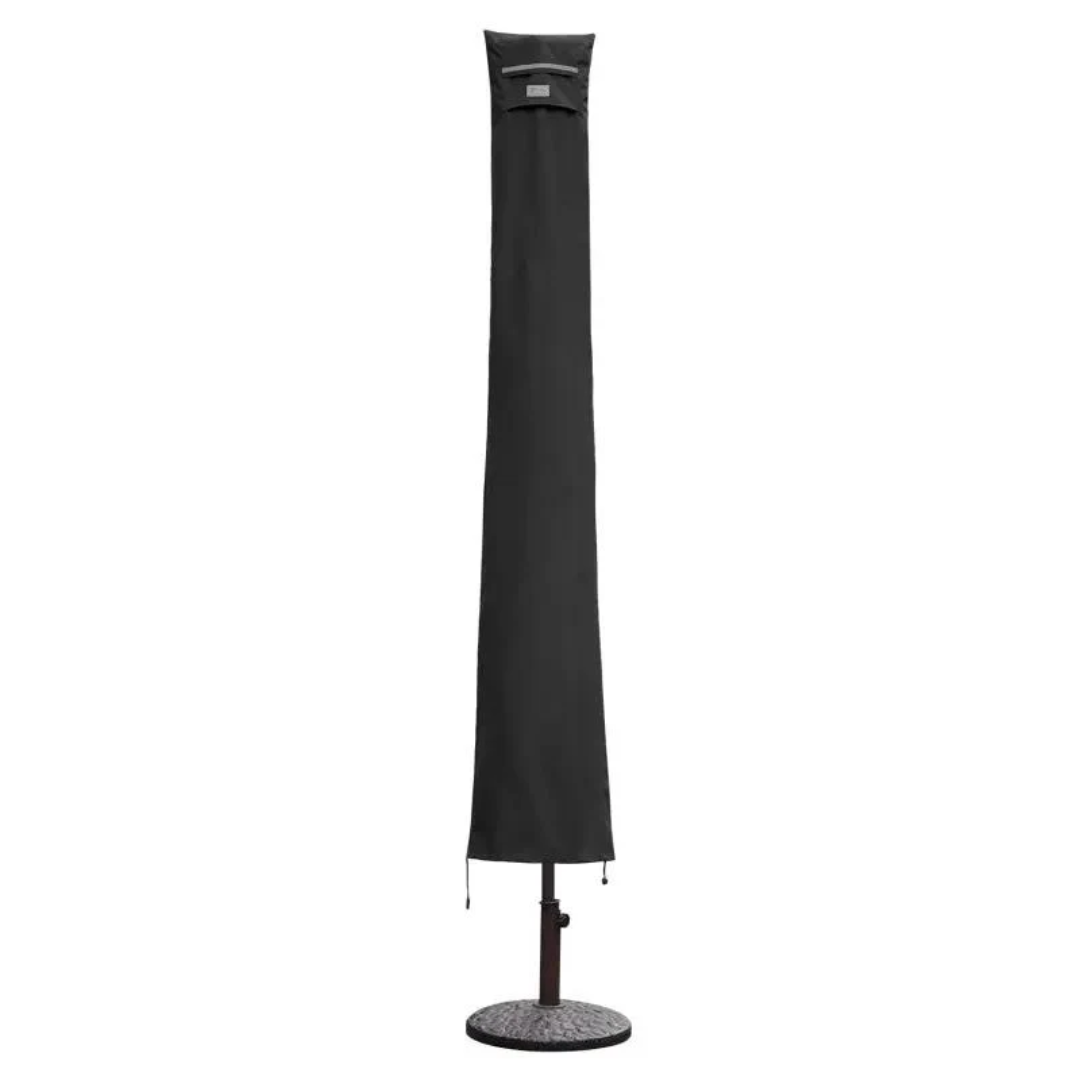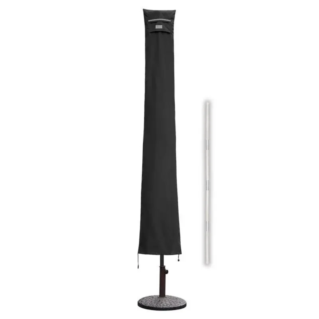 Praktisches Anbringen: Mit Stab und Reißverschluss für müheloses Überziehen über stehenden Schirm.