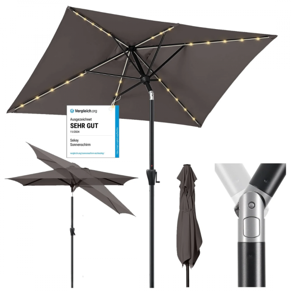 Stabilität: Die Belüftungsöffnung an der Spitze des Sonnenschirms und das Sicherheitsband gewährleisten Stabilität und Sicherheit auch bei starkem Wind.
