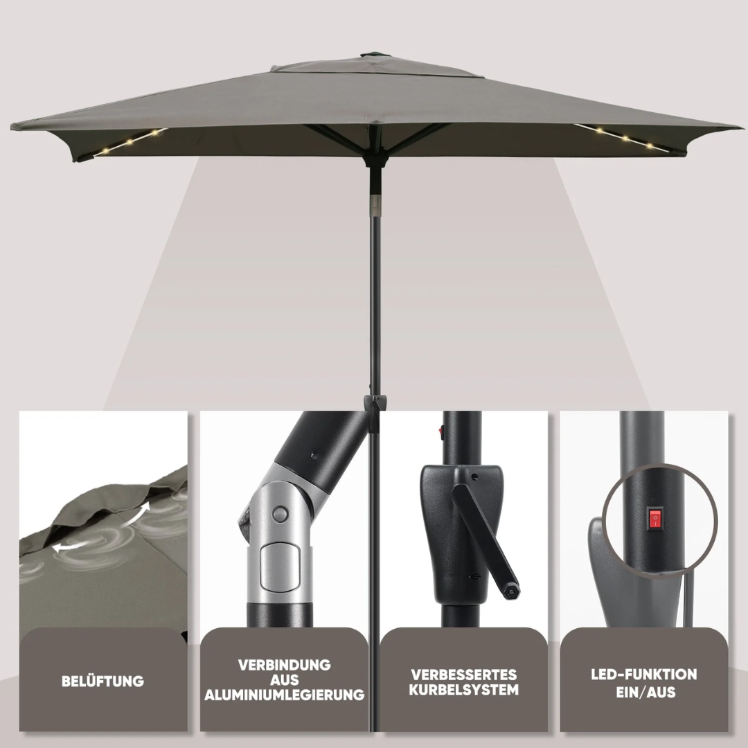 Maße: Rechteckig mit den Maßen 300 x 200 cm, Höhe: 248 cm, Schirmdurchmesser: 38 mm. Extra große Größe für mehr Schattenfläche, um alle Ihre Bedürfnisse zu erfüllen.