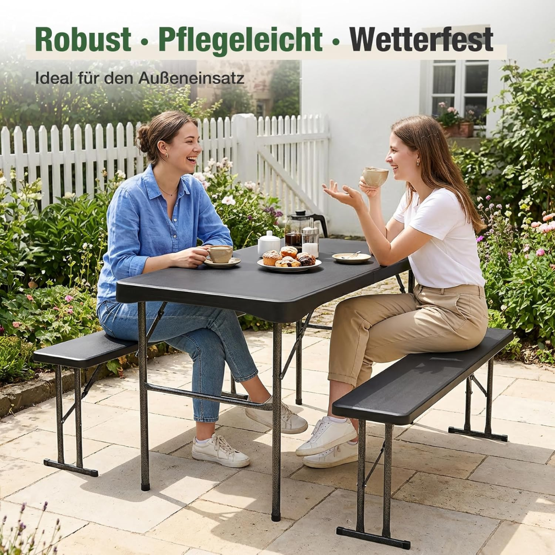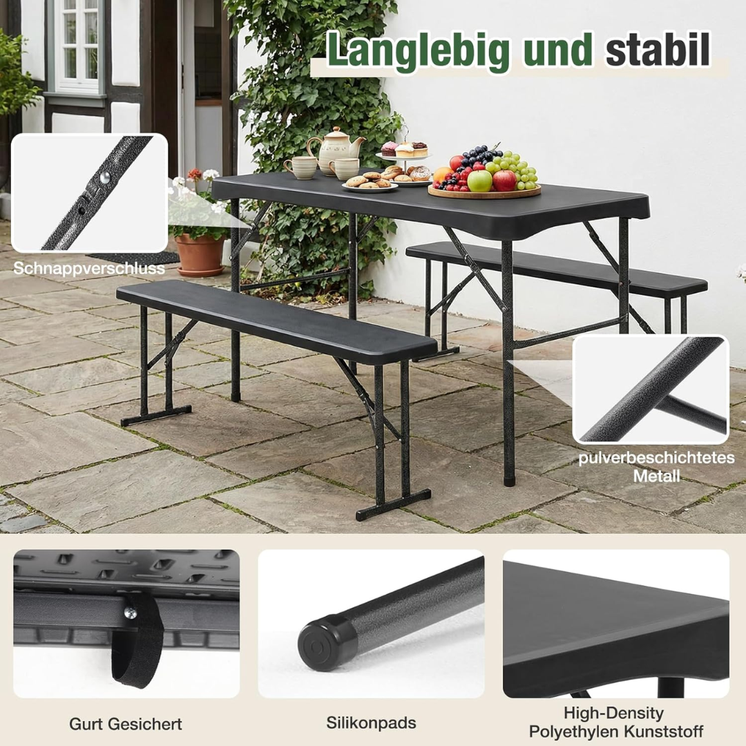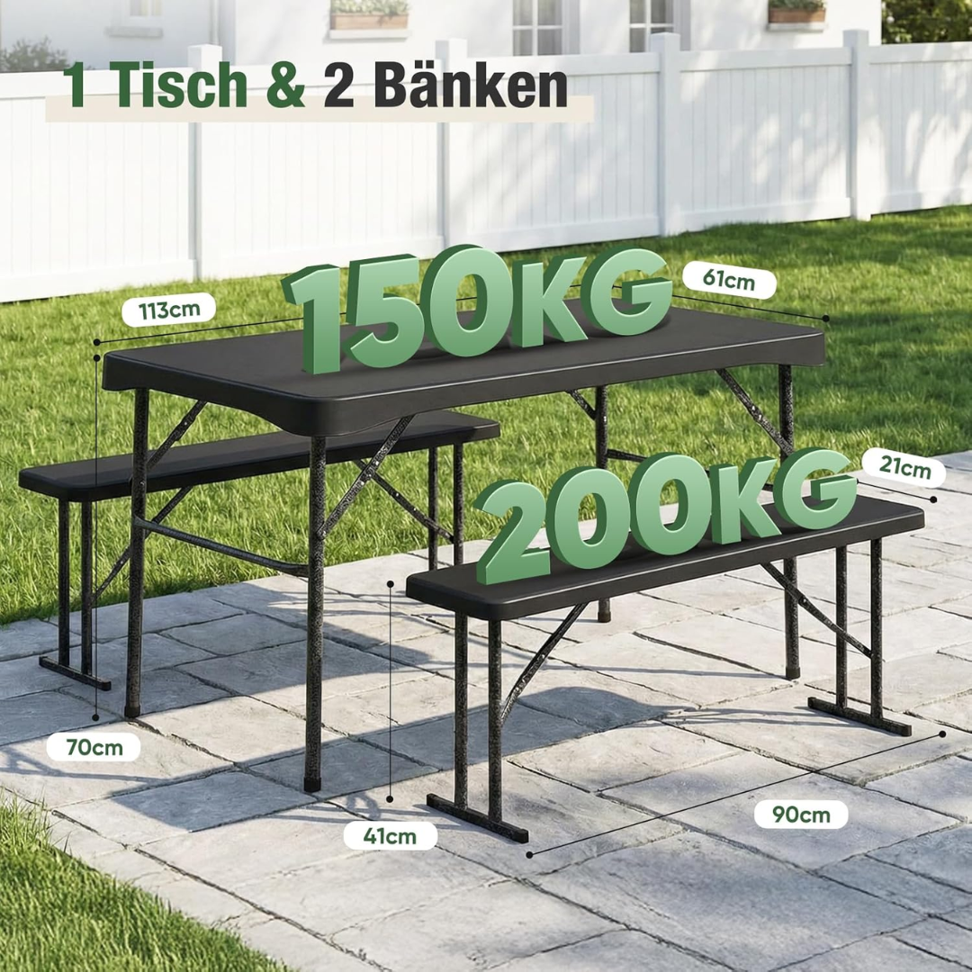 - BIERZELTGARNITUR FÜR 4 PERSONEN: Der Biertisch bis zu 150 kg, Bierbänke bis zu 200 kg, ist diese Garnitur genial für Balkon, Camping, kleine Familienessen.