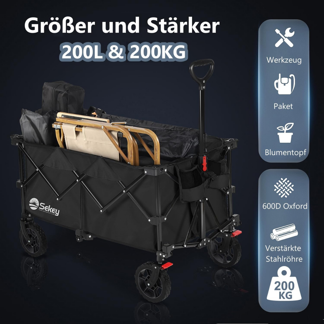 【𝐏𝐥𝐚𝐭𝐳𝐬𝐩𝐚𝐫𝐞𝐧𝐝 𝐮𝐧𝐝 𝐭𝐫𝐚𝐧𝐬𝐩𝐨𝐫𝐭𝐚𝐛𝐞𝐥】: Der Bollerwagen lässt sich leicht zusammenfalten und passt bequem in Ihr Auto oder lässt sich platzsparend im Schrank verstauen. Ideal für Campingausflüge, Gartenarbeit, Einkäufe und vieles mehr, wo ein einfacher Transport und eine geringe Stellfläche wichtig sind.