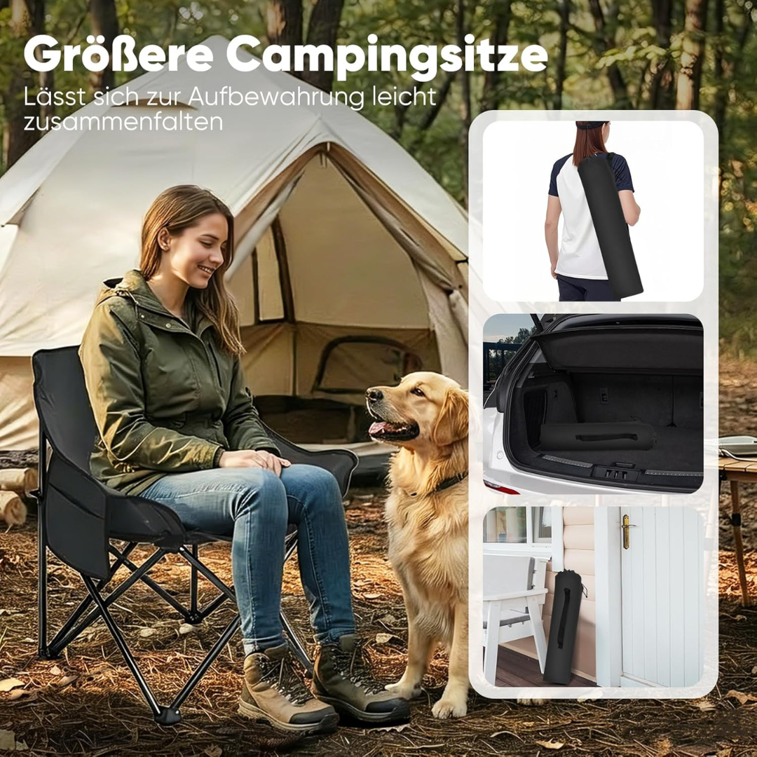 Hergestellt aus strapazierfähigem 600D Oxford-Stoff und mit einer Belastbarkeit von bis zu 100 kg, bietet dieser Klappstuhl Stabilität und Komfort zugleich. Die rutschfesten Füße sorgen für einen sicheren Stand auf verschiedenen Untergründen, während praktische Seitentaschen Platz für Handy, Getränke oder persönliche Gegenstände bieten.