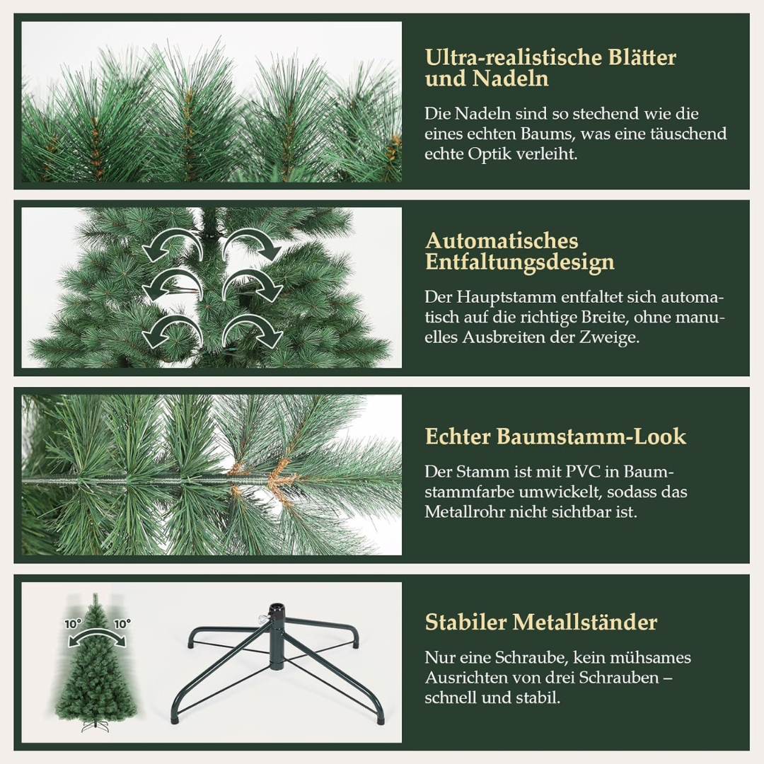 100 cm Extra großer Baumumfang – Mit einem Durchmesser von 100 cm wirkt der Baum besonders voll und beeindruckend, perfekt für eine festliche Präsentation.
