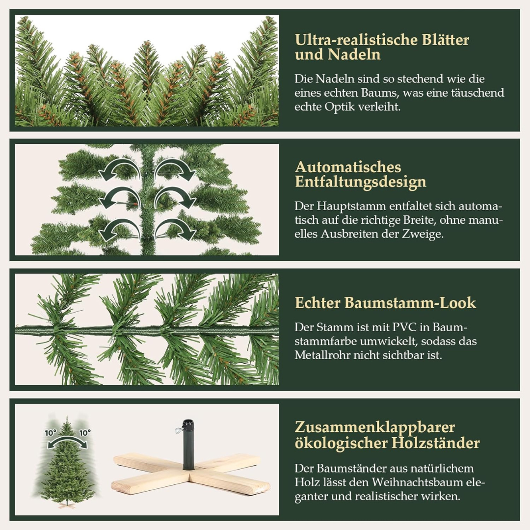 Realistische Natur-Optik: Künstlicher Weihnachtsbaum mit dicht angeordneten Spitzen, Preiswert und authentisch Längere, dichtere PVC-Zweige mit spitzen Enden für eine realistische Optik, Durchmesser des Holzständer: 45 cm.