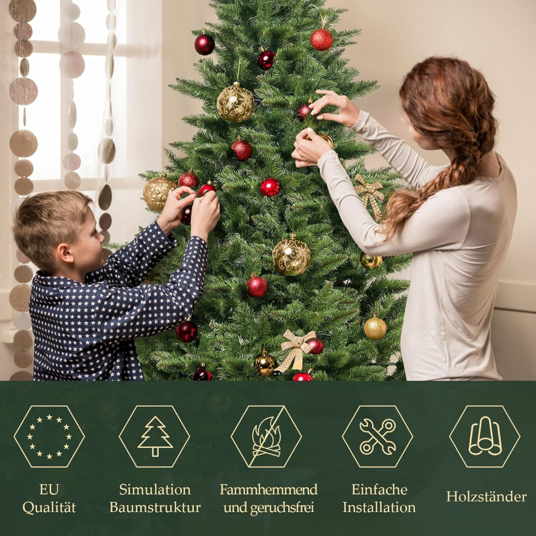 Flammenhemmend und Sicher: Künstlicher Weihnachtsbaum hergestellt aus schwer entflammbarem PVC mit Christbaumständer, zudem frei von Terpen, Sicher und geruchlos, Ideal für Senioren, Kinder und Haustiere unschädlich für alle.
