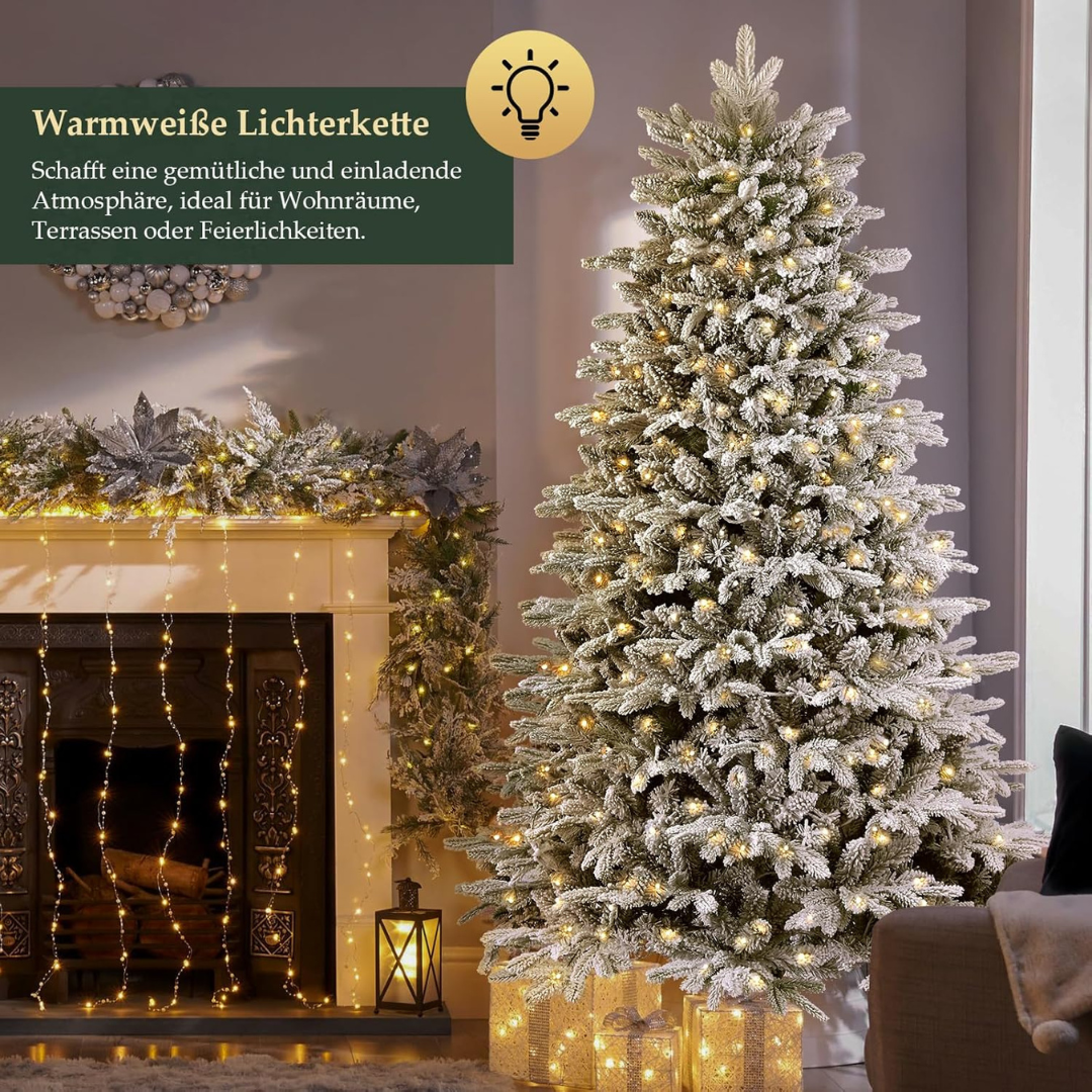 Festliche Stimmung: Dieser Weihnachtsbaum ist stolze 180 cm hoch und ist mit 330 warmweißen LED-Lichtern ausgestattet, die perfekt zum weißen Schneeflockeneffekt passen und eine bezaubernde winterliche Weihnachtsatmosphäre schaffen. Unter diesem Baum werden Sie die Wärme und Behaglichkeit des Winterlichts spüren.