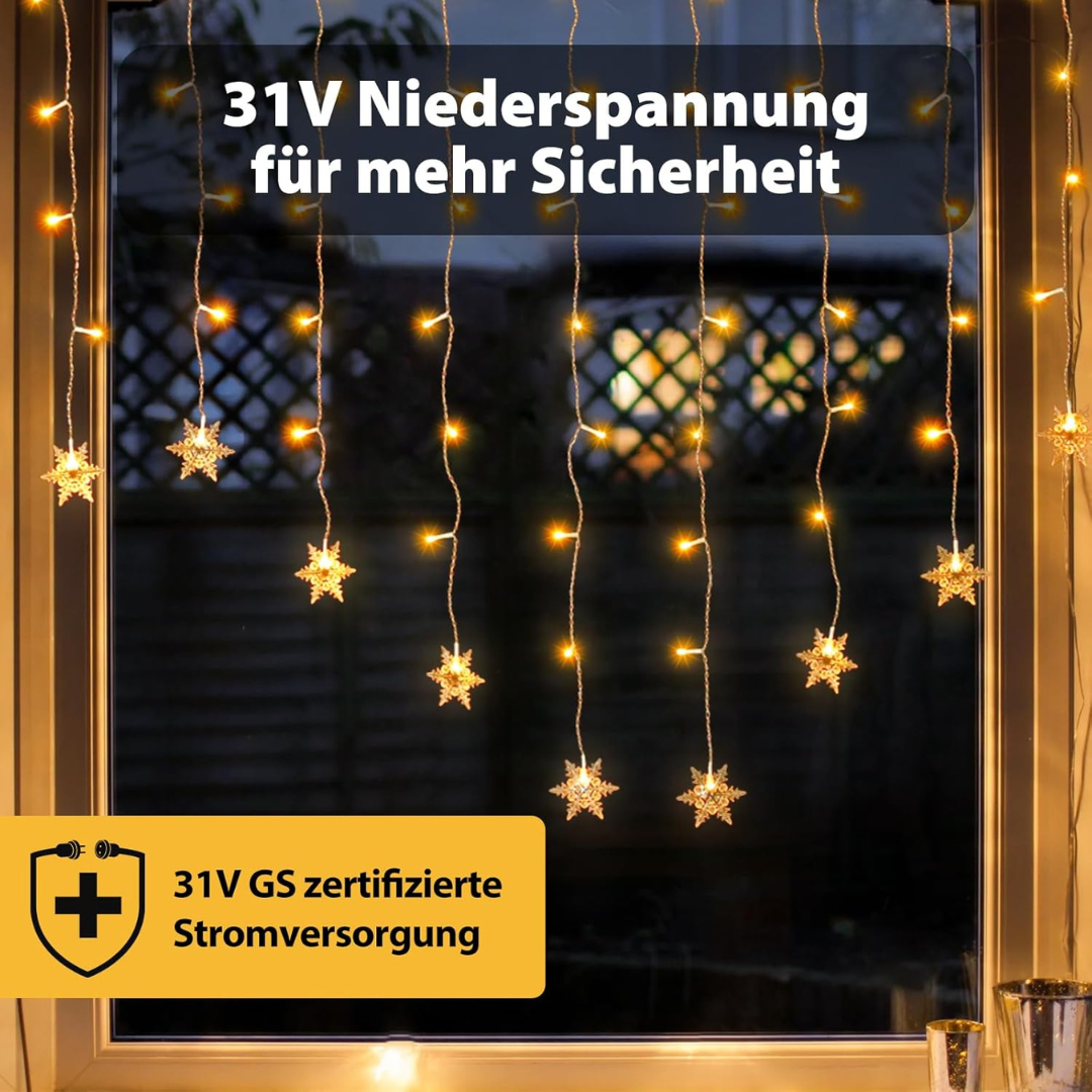 Schneeflocke Lichterkette LED 31V Sicherheitsnetzteil, IP44 wasserdicht.