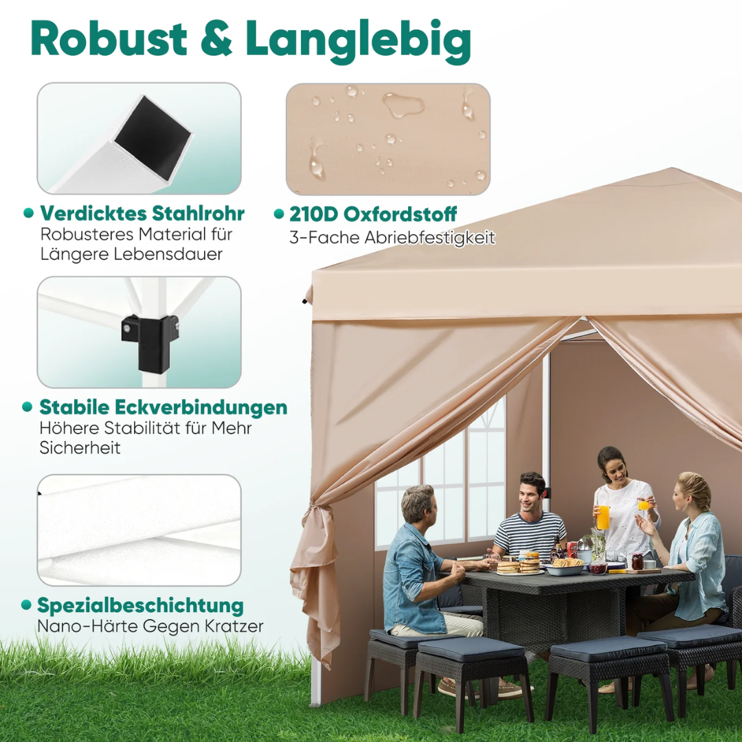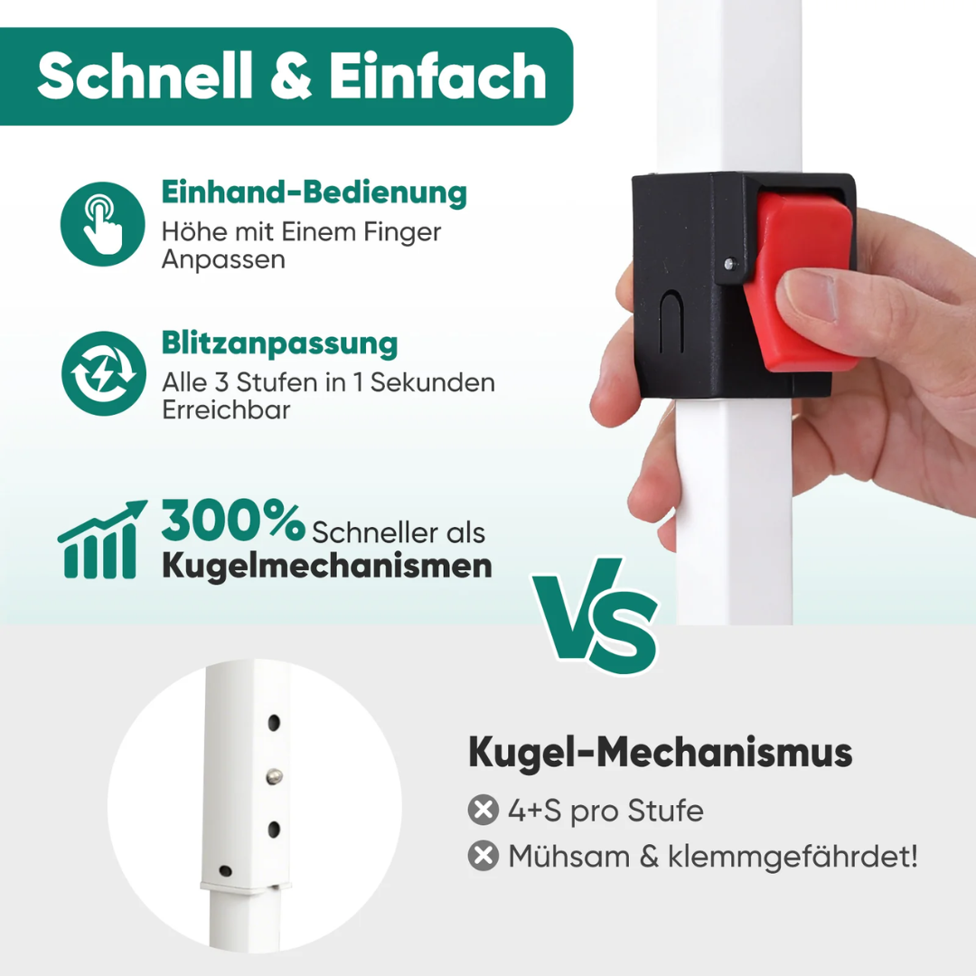 【𝐒𝐜𝐡𝐧𝐞𝐥𝐥 𝐚𝐮𝐟𝐠𝐞𝐛𝐚𝐮𝐭 𝐢𝐧 𝟏 𝐌𝐢𝐧𝐮𝐭𝐞】Mit dem innovativen 𝐎𝐧𝐞-𝐓𝐨𝐮𝐜𝐡-𝐂𝐞𝐧𝐭𝐞𝐫-𝐋𝐨𝐜𝐤 lässt sich der Pavillon 3×3 blitzschnell und alleine aufstellen. Die Höhe ist stufenlos von 𝟐4𝟎 𝐜𝐦 𝐛𝐢𝐬 270 𝐜𝐦 einstellbar.