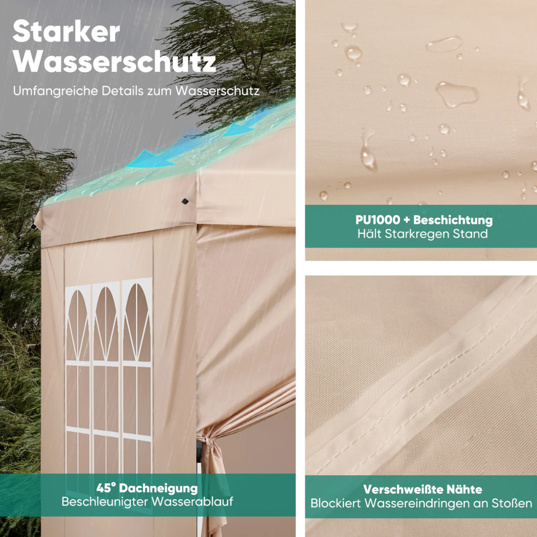 【𝐖𝐢𝐧𝐝𝐟𝐞𝐬𝐭 & 𝐑𝐨𝐛𝐮𝐬𝐭】Dank verstärkter Konstruktion und hochwertiger Materialien trotzt der Pavillon auch starkem Wind und bleibt über Jahre hinweg stabil.