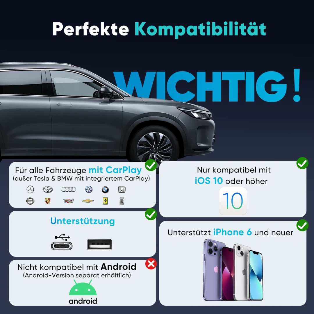 Kompatibel mit über 99% werkseitiger CarPlay-Fahrzeuge (außer Tesla, bestimmte BMW)
