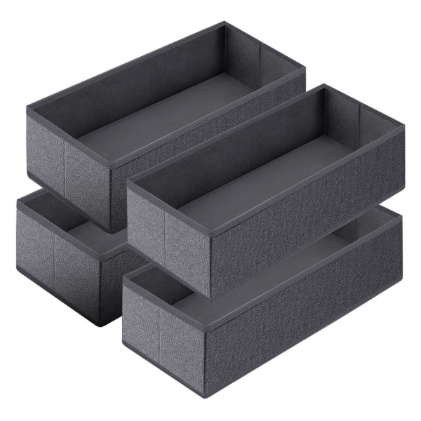 Dank der stabilen Bodenplatten behalten die Boxen auch gefüllt ihre Form und lassen sich mühelos in Schubladen, Regale oder Kleiderschränke einsetzen. Die neutralen Grautöne fügen sich harmonisch in jedes Wohnambiente ein und sorgen für eine ruhige, ordentliche Optik.