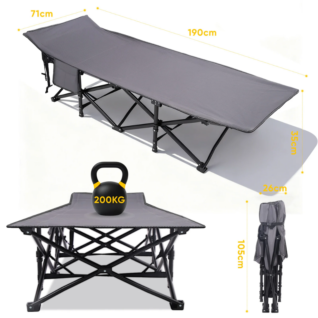 Das Sekey Feldbett Campingbett klappbar bietet eine großzügige Liegefläche von 190 × 71 × 35 cm und sorgt dank der erhöhten Schlafposition für spürbar mehr Komfort – ideal für Camping, Garten, Balkon, Strand oder als mobiles Gästebett.