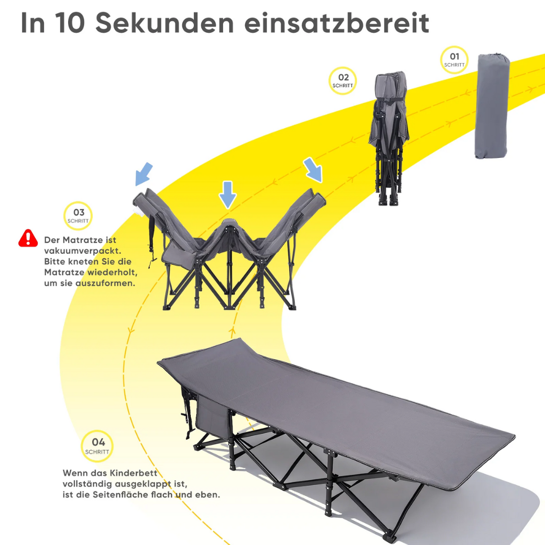 Ein vielseitiger Begleiter für Camping, Angeln, Festivals, Garten, Terrasse oder als komfortables Gästebett im Alltag.