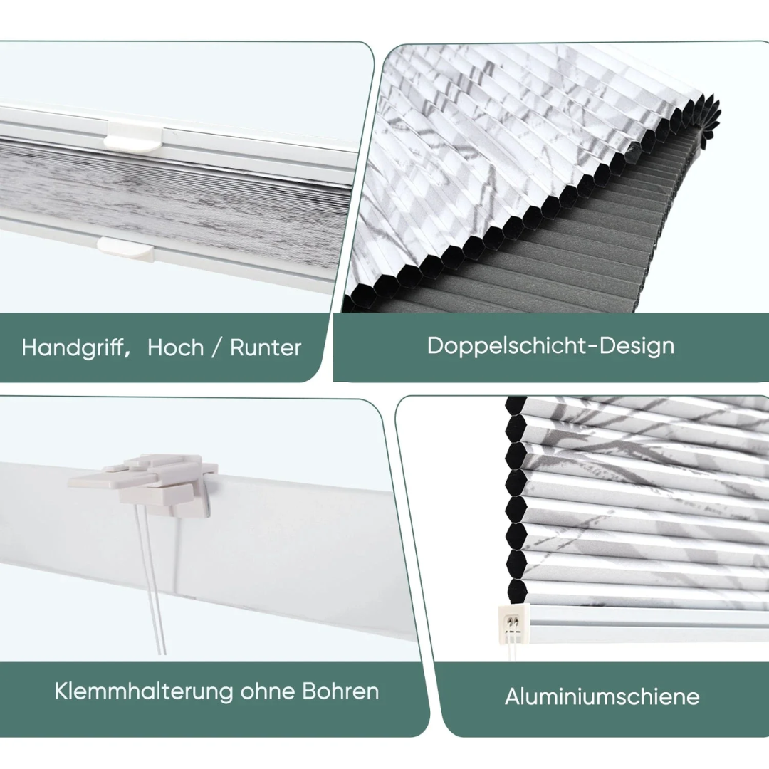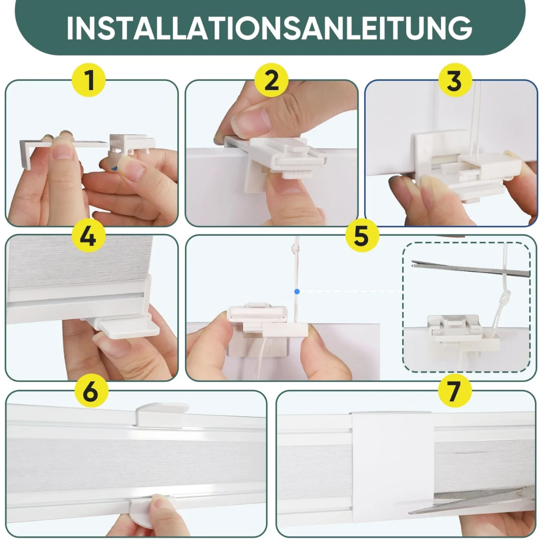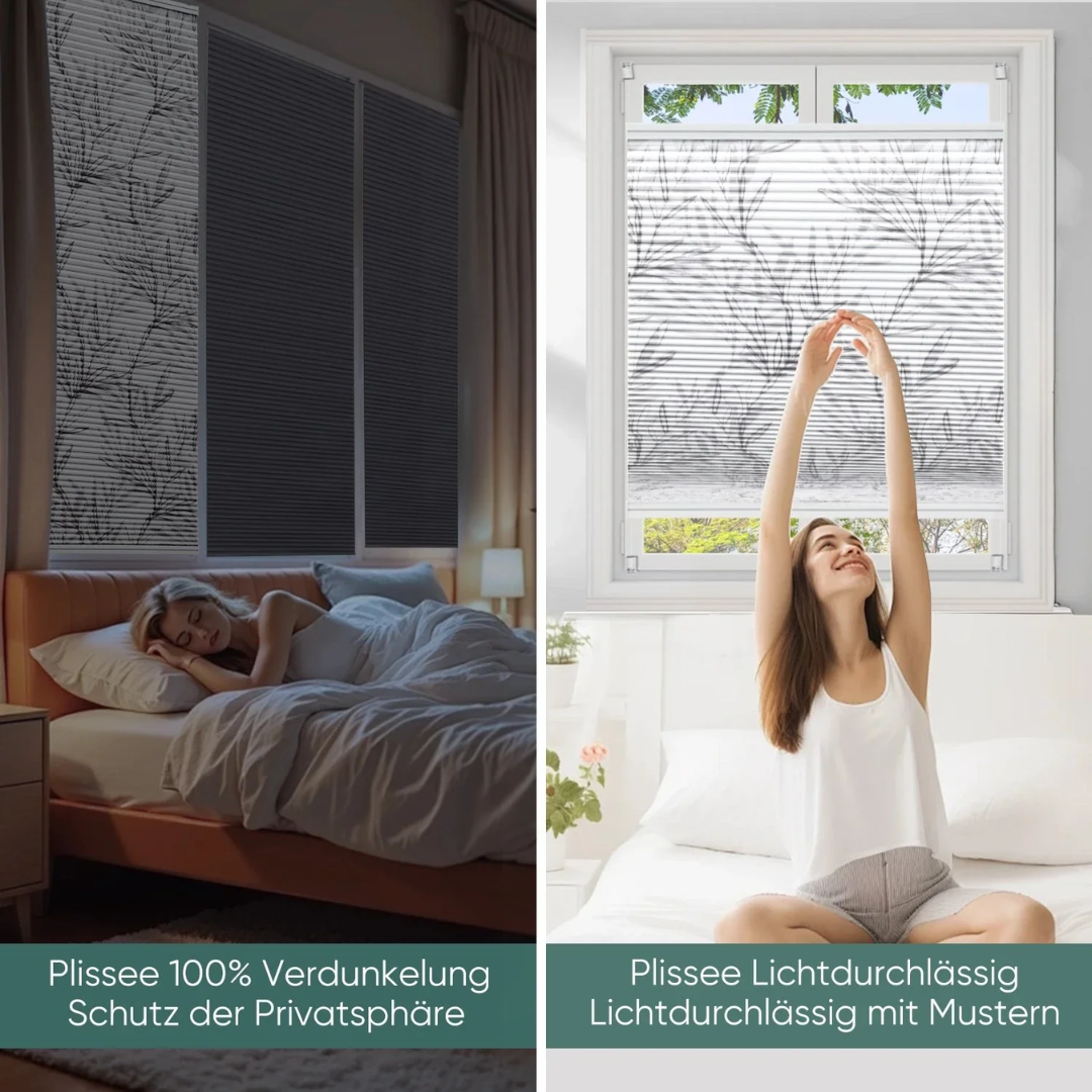 Einfache Montage für verschiedene Fenstertypen: Schnelle Montage mit oder ohne Bohren. In wenigen Minuten einsatzbereit – geeignet für Schlafzimmer, Wohnzimmer, Büro u. v. m.
